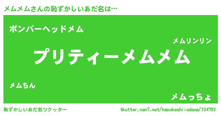 | 2回繰り返すあだ名 | 『メムメム』『へにゃへにゃ』 |
