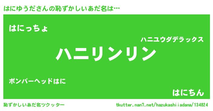 | 意味不明あだ名 | 『住所不定無職はにゆうだ(1歳)』 |