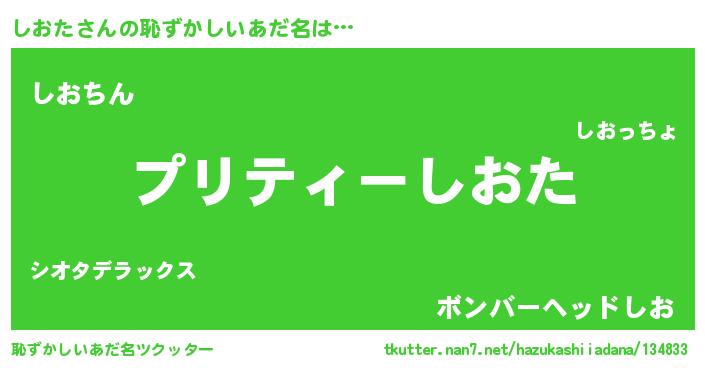 | 意味不明あだ名 | 『ペロリンしおた』『永久保存しおた』 |