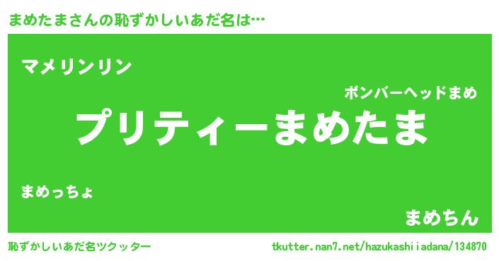 | ヒーロー風カッコイイあだ名 | 『スーパーマメタマ』『天弓騎士マメ』 |