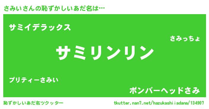 | 意味不明あだ名 | 『とにかく怪しいさみい』『自称さみい』 |