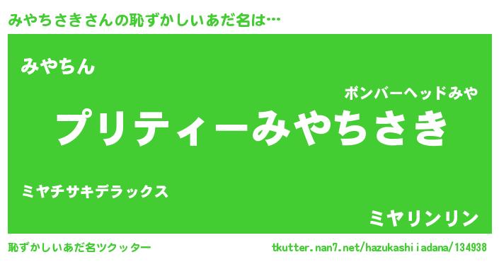 | 男性向けラノベタイトル風あだ名 | 『転生したらみやちさきだった件』 |