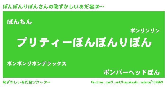 | ヘコむあだ名 | 『ぼんっふぃ~』『ぼんぼんりぼん(笑)』 |
