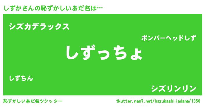| ヘコむあだ名 | 『酢こんぶ』『しずお』『しずもー』 |