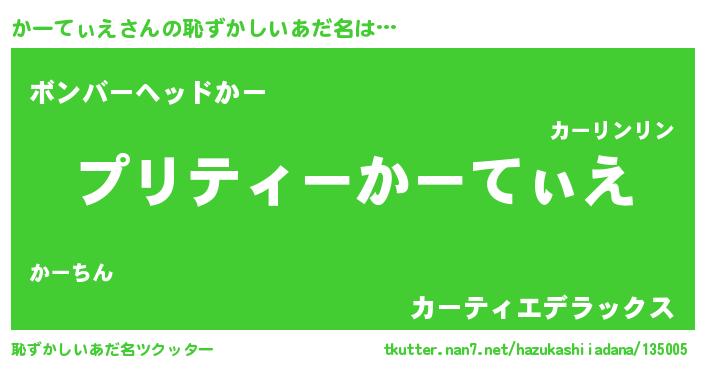 | 意味不明あだ名 | 『ペロリンかーてぃえ』『自称かーてぃえ』 |