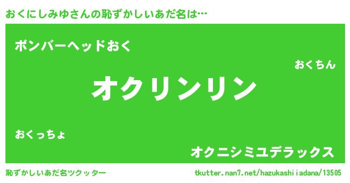 | ヘコむあだ名 | 『おくお』『おくにしみゆ(笑)』 |