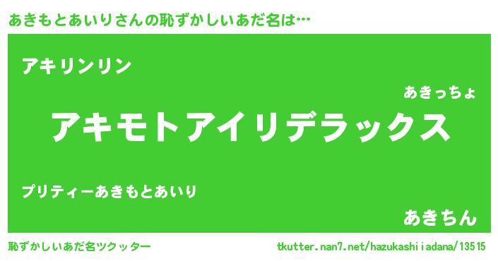 | 意味不明あだ名 | 『自称あきもとあいり』 |