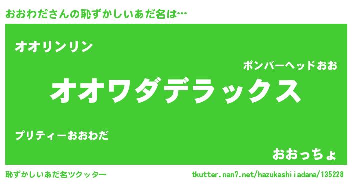 | ヒーロー風カッコイイあだ名 | 『仮面オオダー』『超時空戦士オオワダ』 |