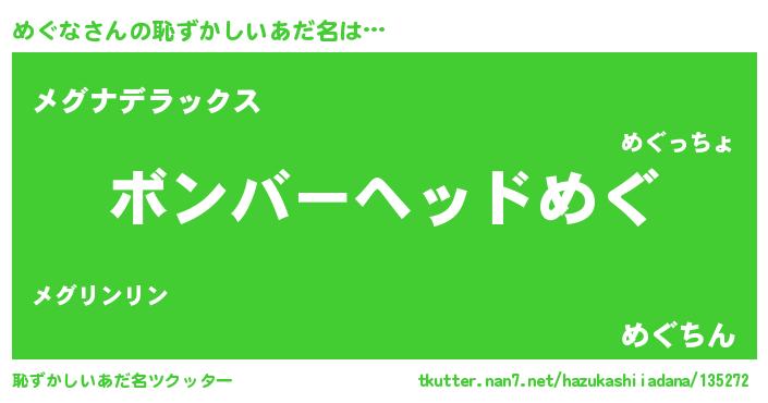 | ヘコむあだ名 | 『めぐな(小並感)』『豆乳』 |