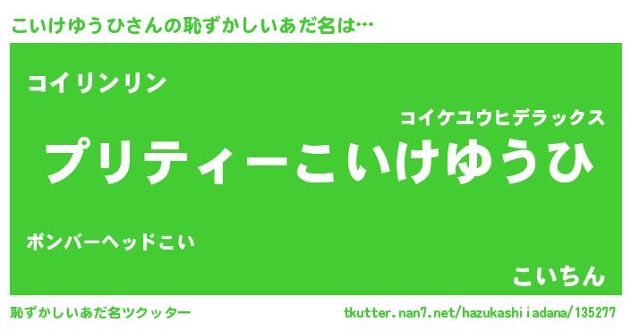 | ポケモン風あだ名 | 『コイチュウ』『ヒコイケユウヒ』 |