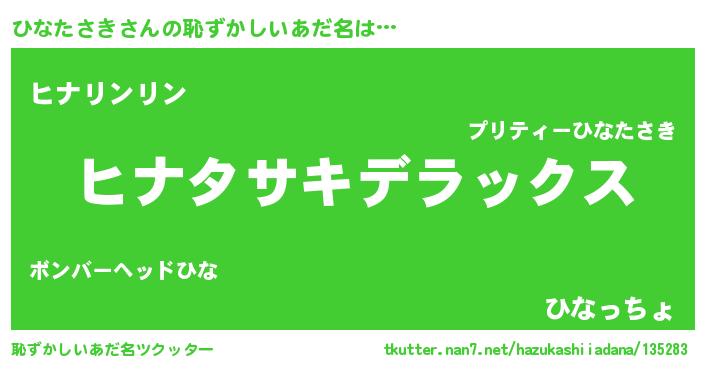 | ポケモン風あだ名 | 『ヒナセウス』『ヒヒナタサキ』 |
