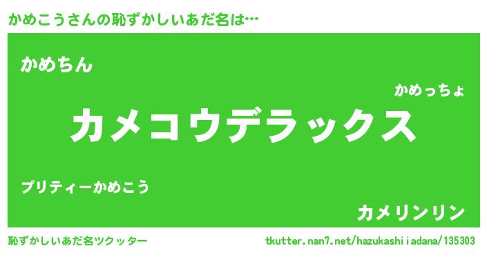 | 意味不明あだ名 | 『自称かめこう』『永久保存かめこう』 |