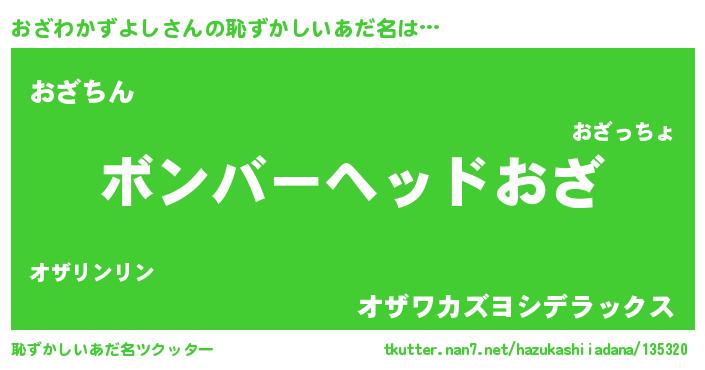 | 男性向けラノベタイトル風あだ名 | 『おざわかずよし~年齢イコール彼女いない歴の魔法使い~』 |