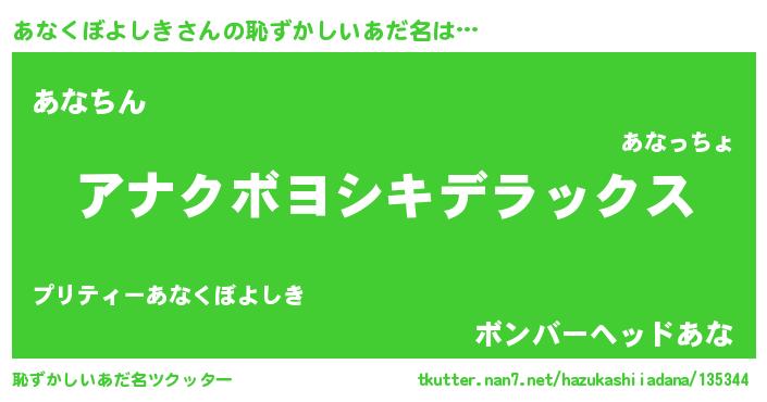 | 意味不明あだ名 | 『自称あなくぼよしき』 |