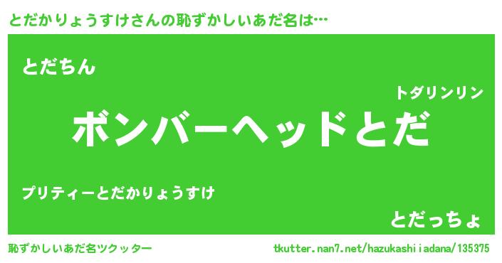 | ヘコむあだ名 | 『とだかりょうすけ(小並感)』『なまこ酢』 |