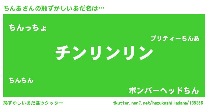 | 意味不明あだ名 | 『とにかく怪しいちんあ』 |
