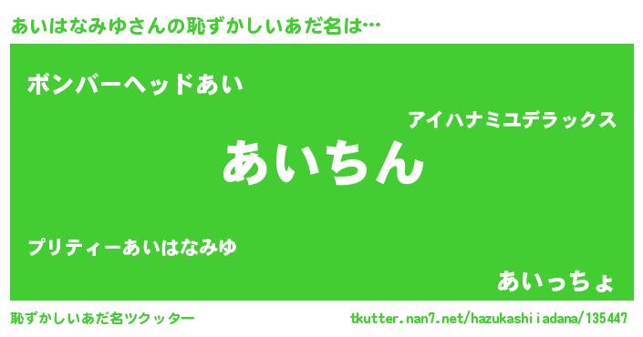 | ヘコむあだ名 | 『あいはなみゆ(笑)』『豆乳』 |