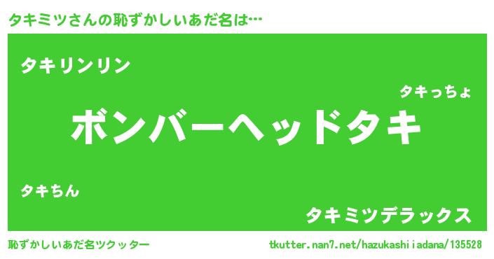 | ヘコむあだ名 | 『タキ太郎』『つくし』『タキにー』 |
