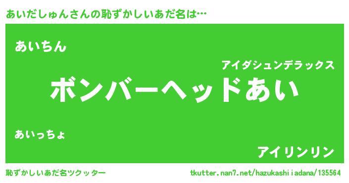 | ヘコむあだ名 | 『あいだしゅん(苦笑)』『あいっぺ』 |