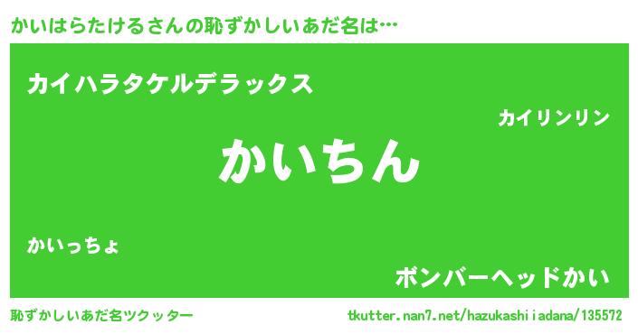 | 男性向けラノベタイトル風あだ名 | 『カイハラタケルスレイヤー』 |