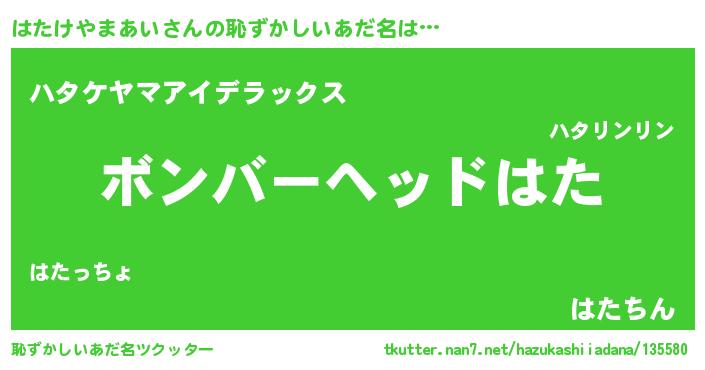 | ヘコむあだ名 | 『はたけやまあい(震え声)』『はたお』 |
