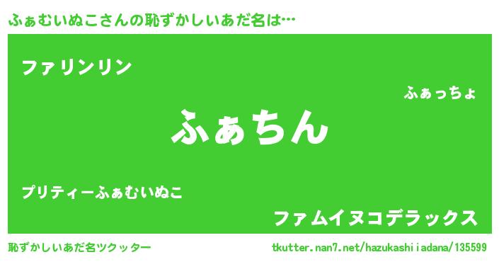 | ヘコむあだ名 | 『ふぁむいぬこ(苦笑)』『ふぁぷりん』 |