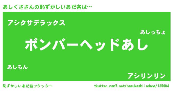 | 意味不明あだ名 | 『住所不定無職あしくさ(8歳)』 |