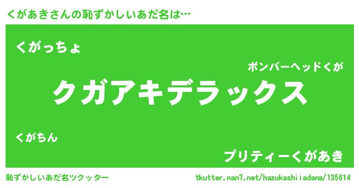 | ヒーロー風カッコイイあだ名 | 『ウルトラ戦士クガアキ』『仮面クガダー』 |