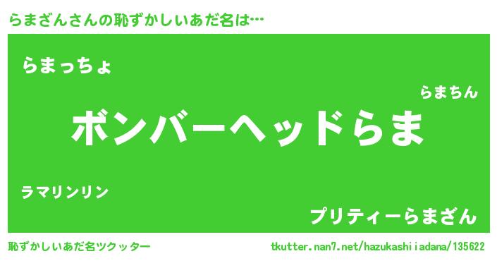 | ヒーロー風カッコイイあだ名 | 『慈愛の使者らまざん』『ネオラマザン』 |