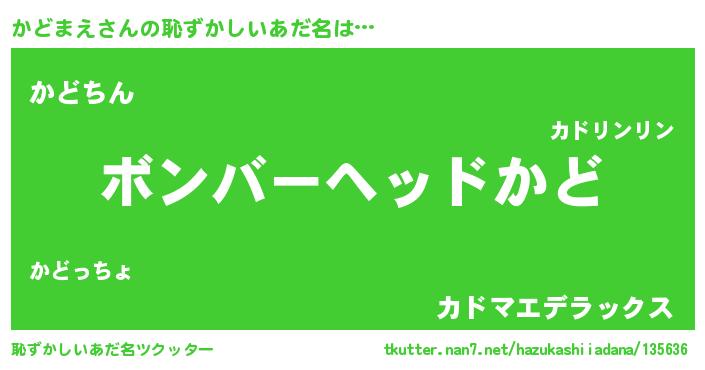 | ヘコむあだ名 | 『かどまえ(笑)』『かどぷりん』 |