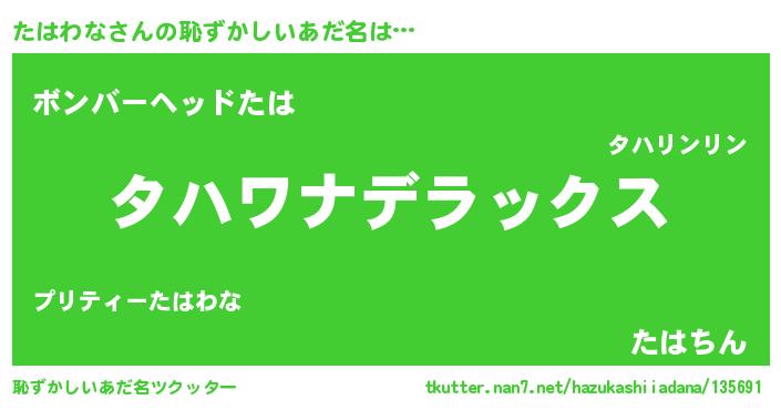 | 意味不明あだ名 | 『自称たはわな』『永久保存たはわな』 |