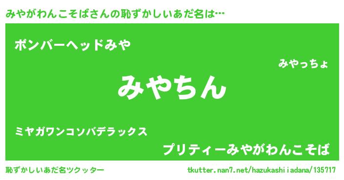 | 意味不明あだ名 | 『永久保存みやがわんこそば』 |