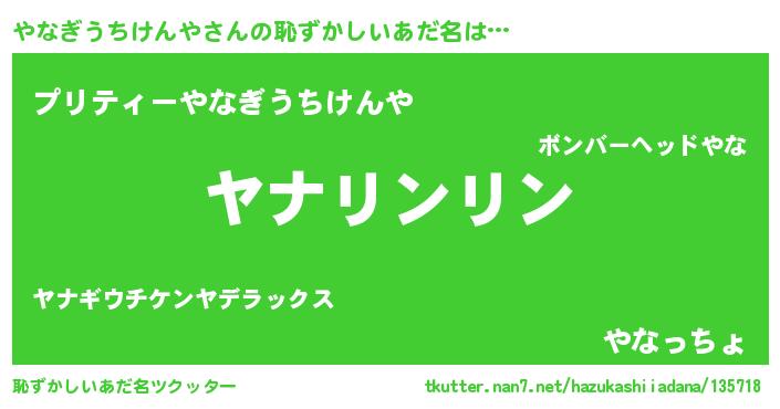 | ポケモン風あだ名 | 『ヒヤナギウチケンヤ』『ヤーナイ』 |