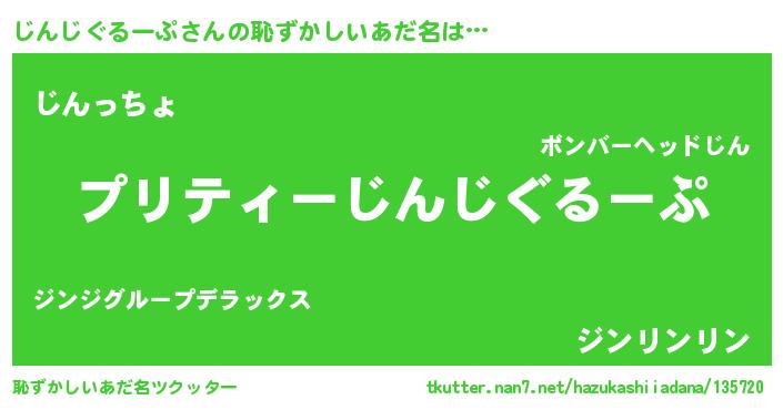 | 男性向けラノベタイトル風あだ名 | 『じんじぐるーぷの憂鬱』 |