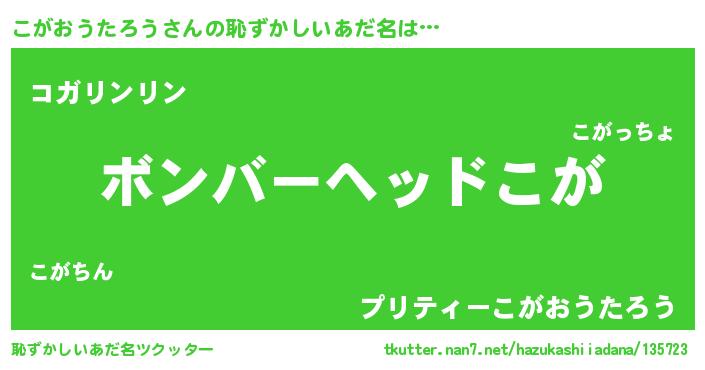 | ヘコむあだ名 | 『こがぷりん』『こがふぇ~』 |