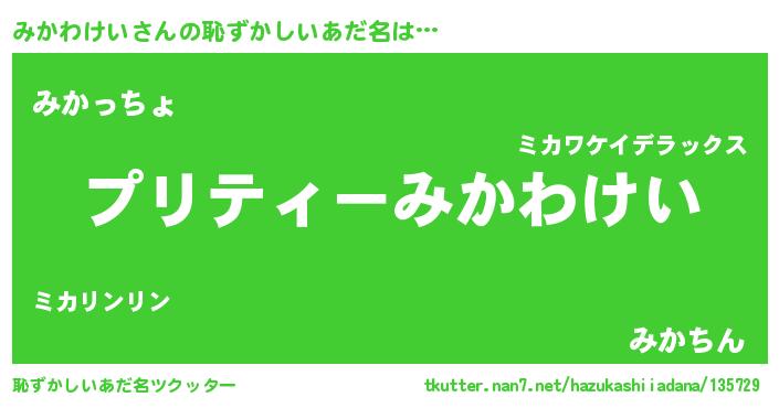 | ポケモン風あだ名 | 『ミカチュウ』『ミカワダネ』 |