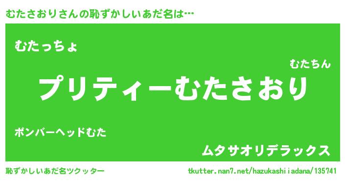 | 意味不明あだ名 | 『ペロリンむたさおり』『自称むたさおり』 |