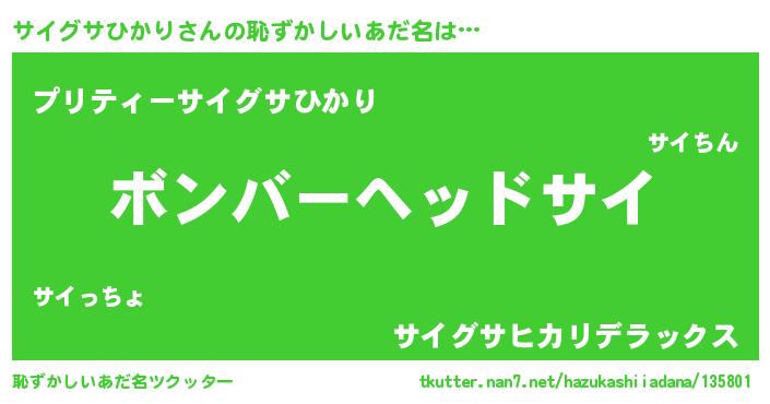 | 欧米人風あだ名 | 『ダニエルサイグサひかり』 |
