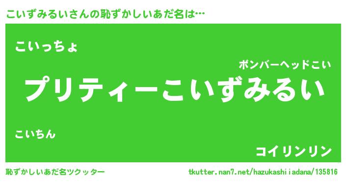 | 胡散臭い通販商品みたいなあだ名 | 『億万長者になれるブレスレット…その名も「こいずみるい」』 |