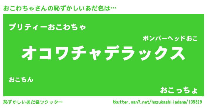 | ヒーロー風カッコイイあだ名 | 『仮面オコダー』『スーパーオコワチャ』 |
