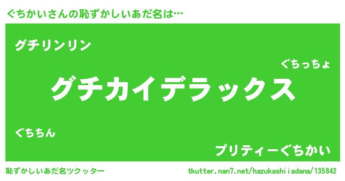 | ヒーロー風カッコイイあだ名 | 『仮面グチダー』『ウルトラ戦士グチカイ』 |