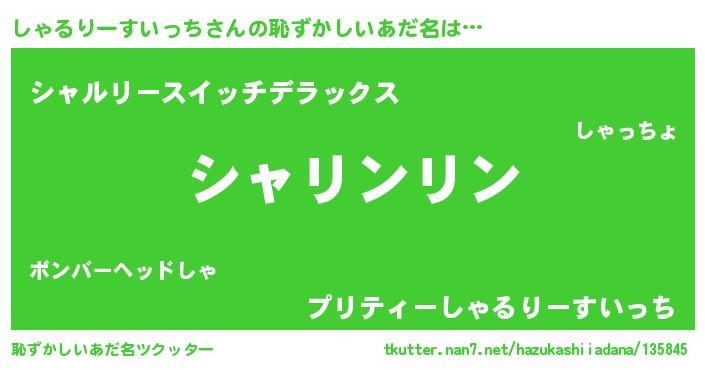| 意味不明あだ名 | 『とにかく怪しいしゃるりーすいっち』 |