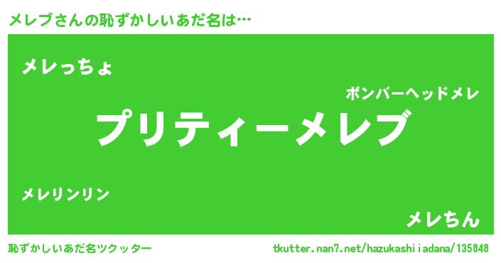 | ヘコむあだ名 | 『メレっふぃ~』『つくし』 |