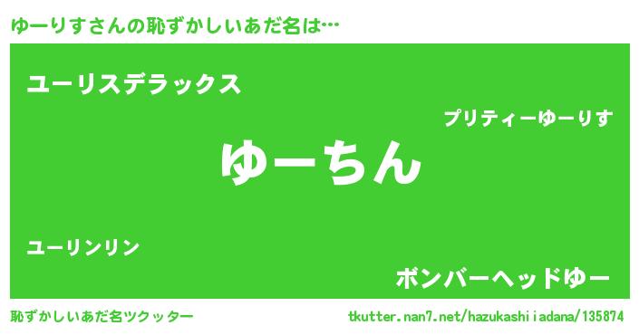 | 意味不明あだ名 | 『永久保存ゆーりす』『自称ゆーりす』 |