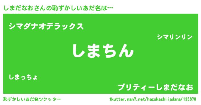 | ヘコむあだ名 | 『しまだなお(遠い目)』『しまふぇ~』 |