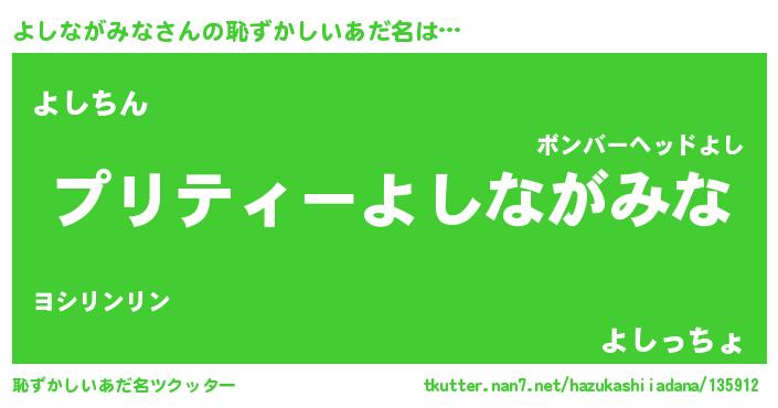| 意味不明あだ名 | 『ペロリンよしながみな』 |