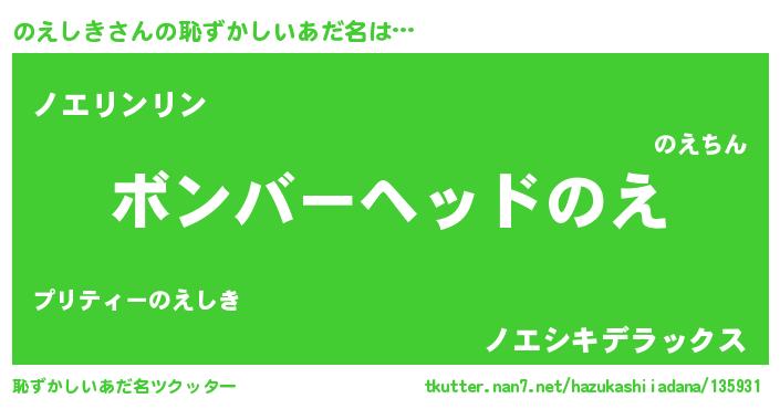| ヘコむあだ名 | 『のえを』『のえしき(震え声)』 |