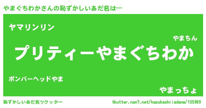 | ヒーロー風カッコイイあだ名 | 『仮面ヤマダー』『スーパーヤマグチワカ』 |