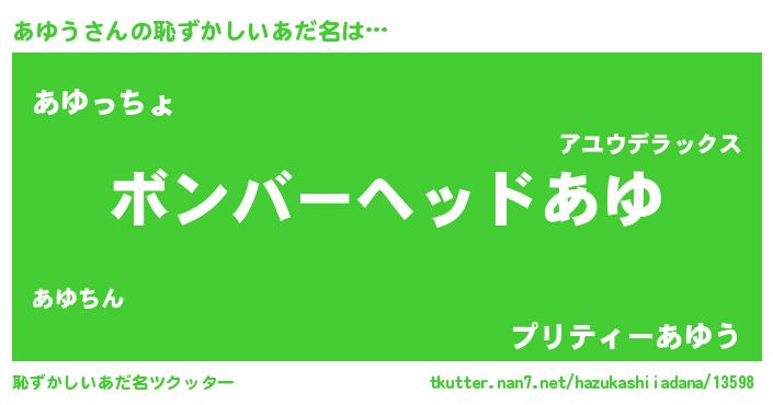 | ヒーロー風カッコイイあだ名 | 『慈愛の使者あゆう』『スーパーアユウ』 |