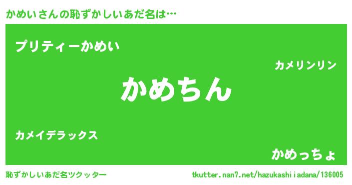 | ヘコむあだ名 | 『かめい(笑)』『かめにー』『牛乳』 |